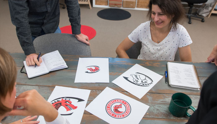 就紐約州立大學科特蘭分校而言,該學院具有三個主要標識符:學術“ C”徽標,紅龍體育徽標和學院標識設計印章。根據規章制度,很少有人可以使用田徑標志,而科特蘭的吉祥物“紅龍”在歷史上一直與運動能力息息相關,如今,紅龍的冠軍精神滲透到從教室到劇院的校園生活的方方面面制作學生的社交生活。當無法使用田徑運動徽標時,教職員工和學生創建了自己的龍圖形,并且多年來,校園內已經出現了幾條龍。這些圖形不一致,沒有統一的質量。