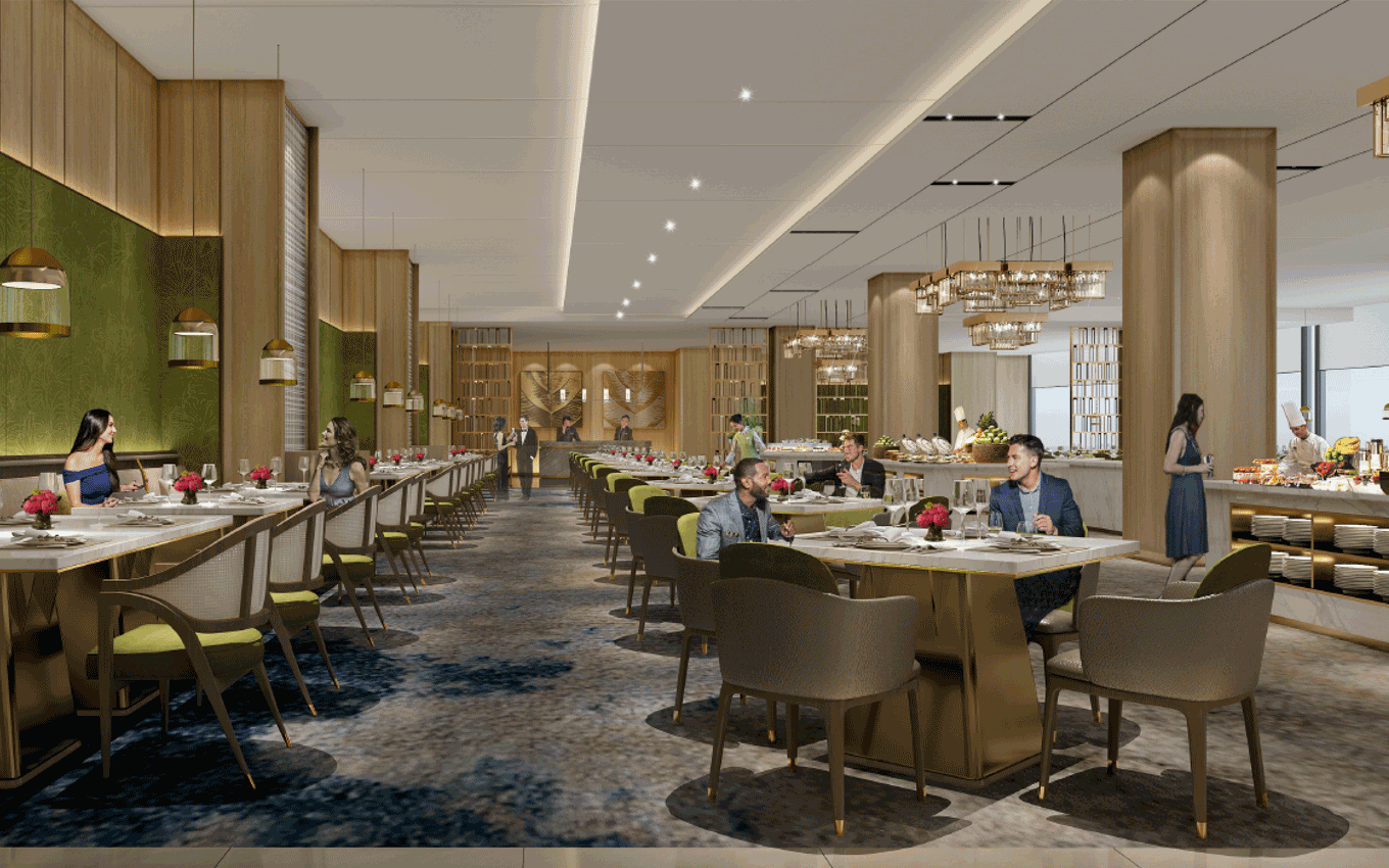 以自然、寧靜的設計思路,將大自然的色彩元素融入室內,給全日餐廳客人一個最輕松舒適的環境